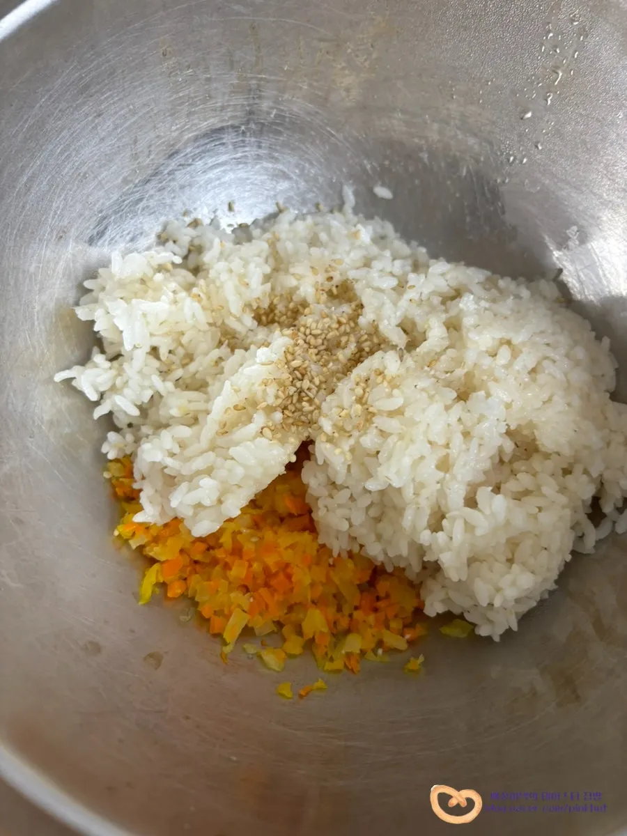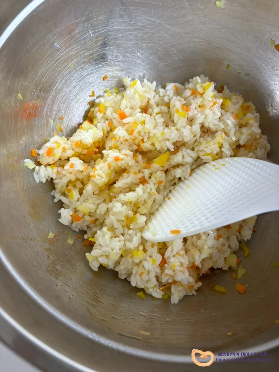 밥이 잘 뭉쳐지지 않기 때문에 잘게 다져서