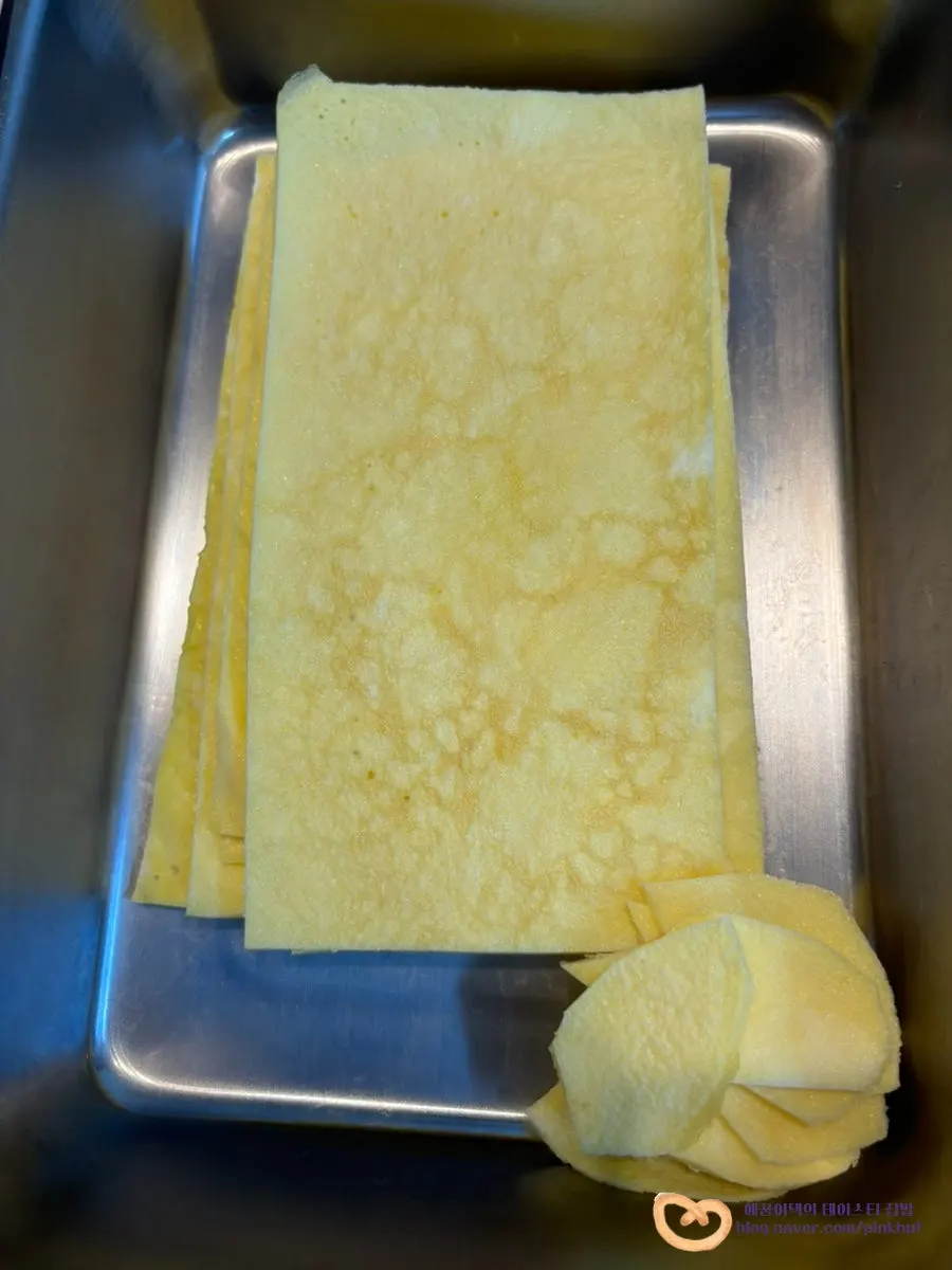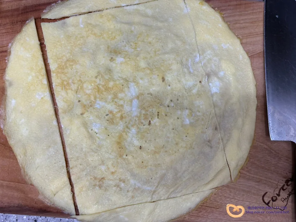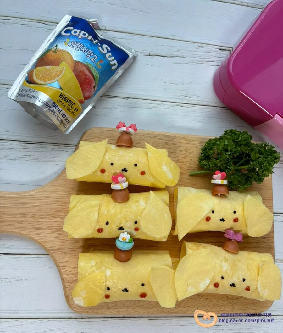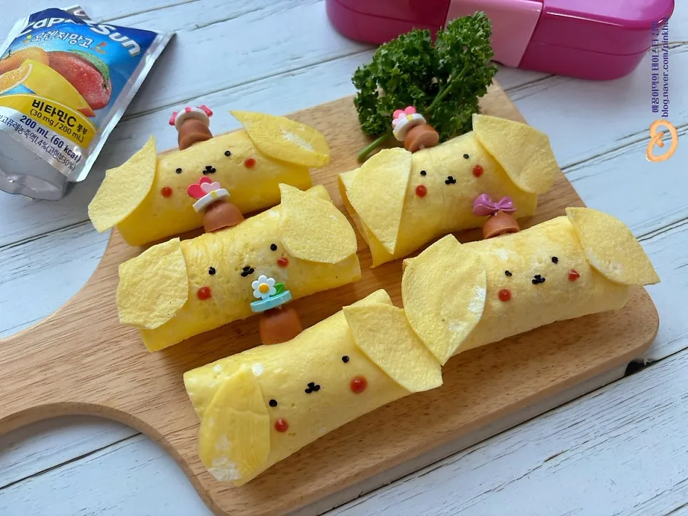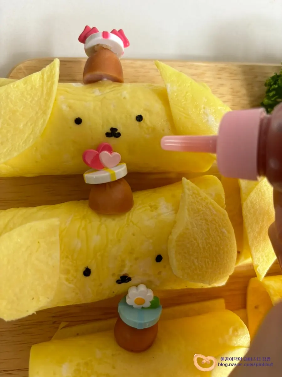 계란지단 1장에 폼폼푸린 얼굴 감싸는 용도의