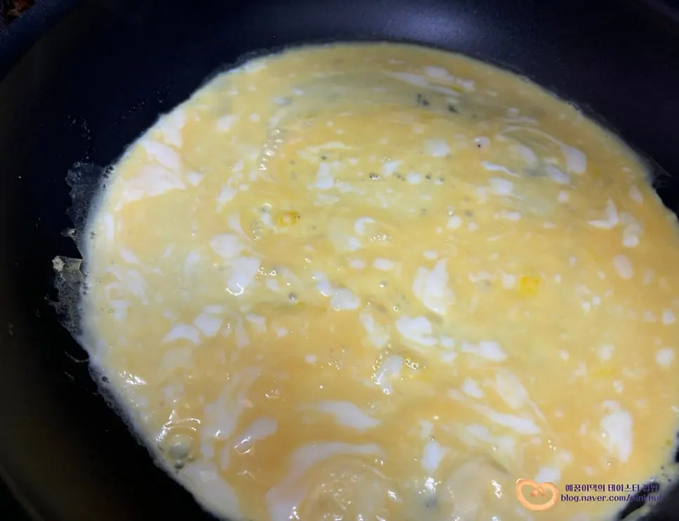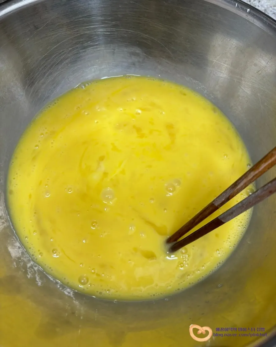 소금 3꼬집, 맛술 1/2T을 넣고 계란물을