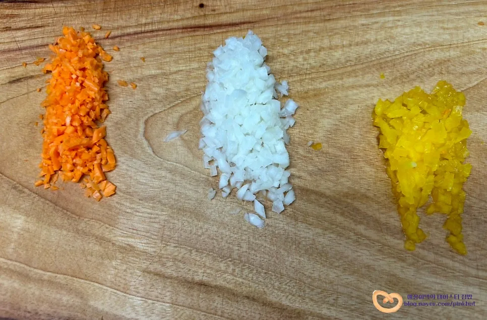 양파, 당근, 파프리카는 잘게 다져서 2T