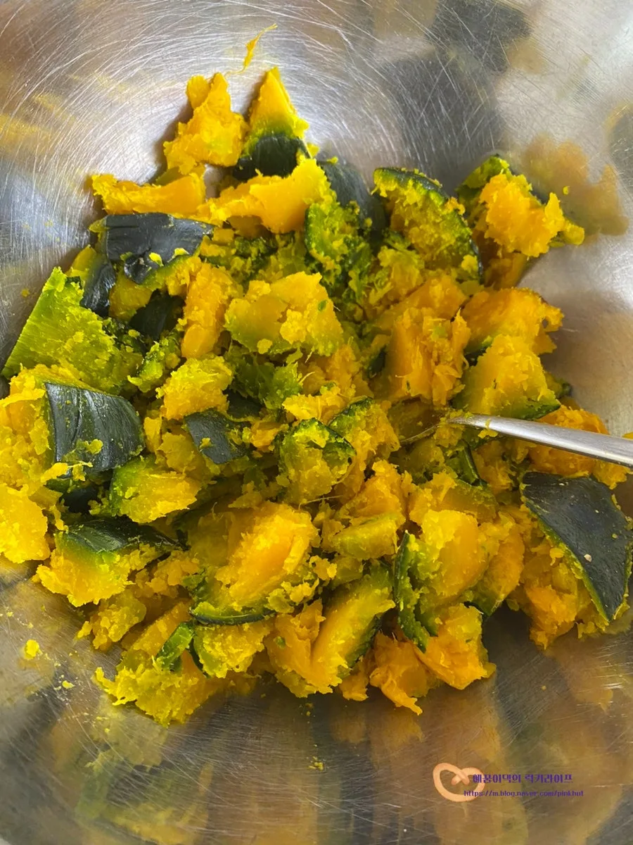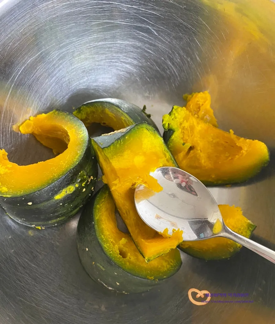 부드럽게 잘 익은 단호박의 모습이에요 :)