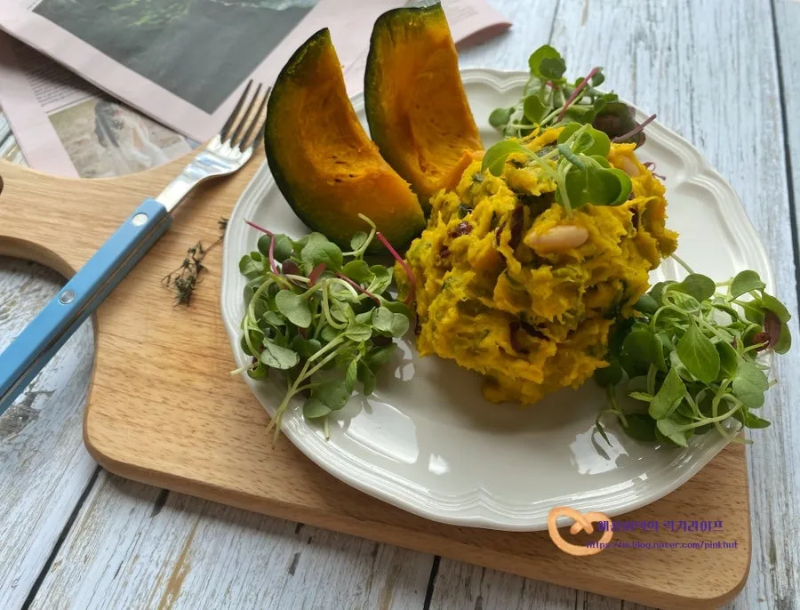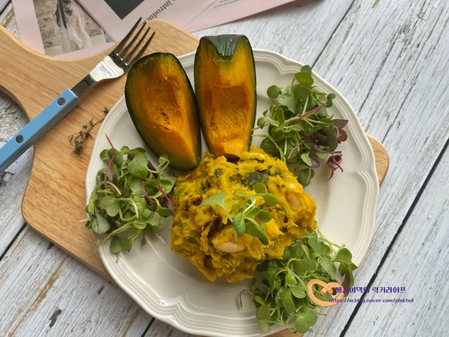 맛있게 만들어진 밤호박샐러드를