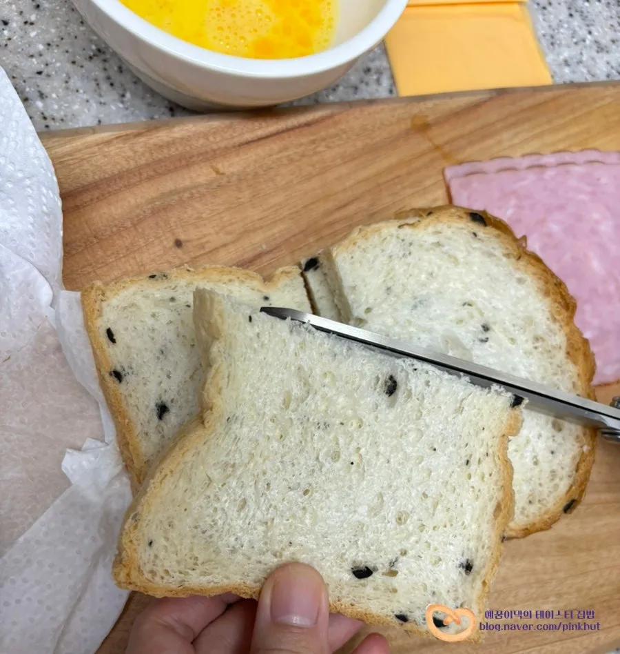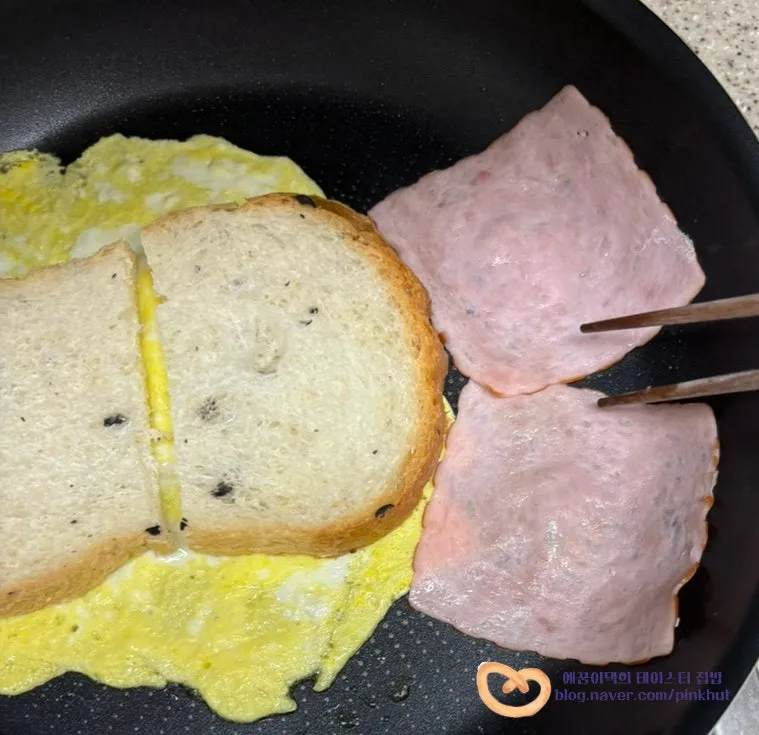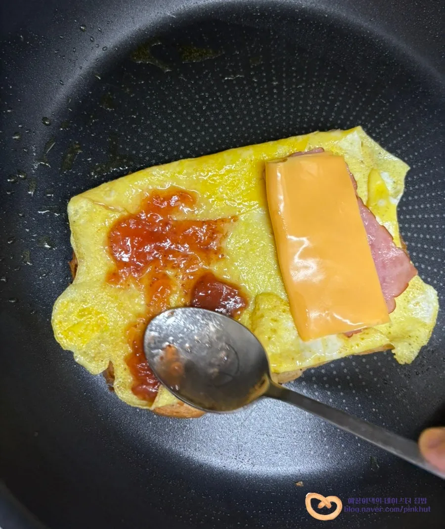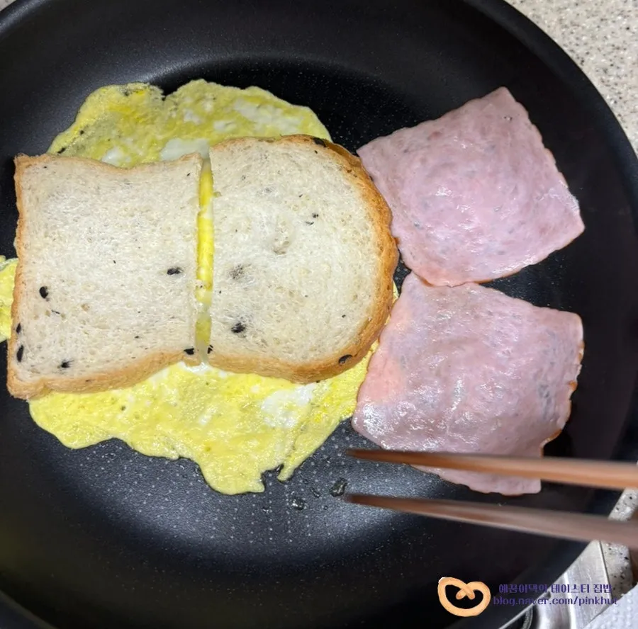 간단 아침식사메뉴 원팬토스트 완성이에요 :)