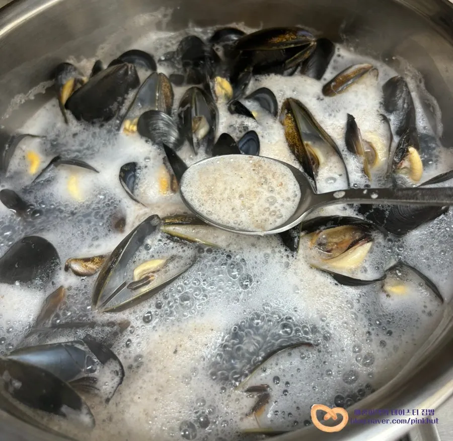 홍합요리는 오래 끓이게 되면 살이 쪼그라들고