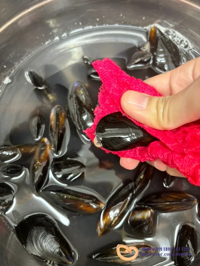 먼저 홍합 손질법을 잘 해 주셔야 해요