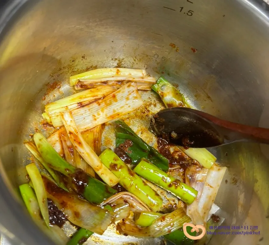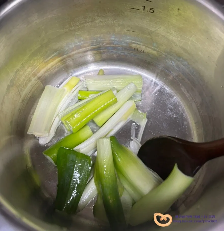 냄비에 식용유 2T를 두르고 준비한 대파를