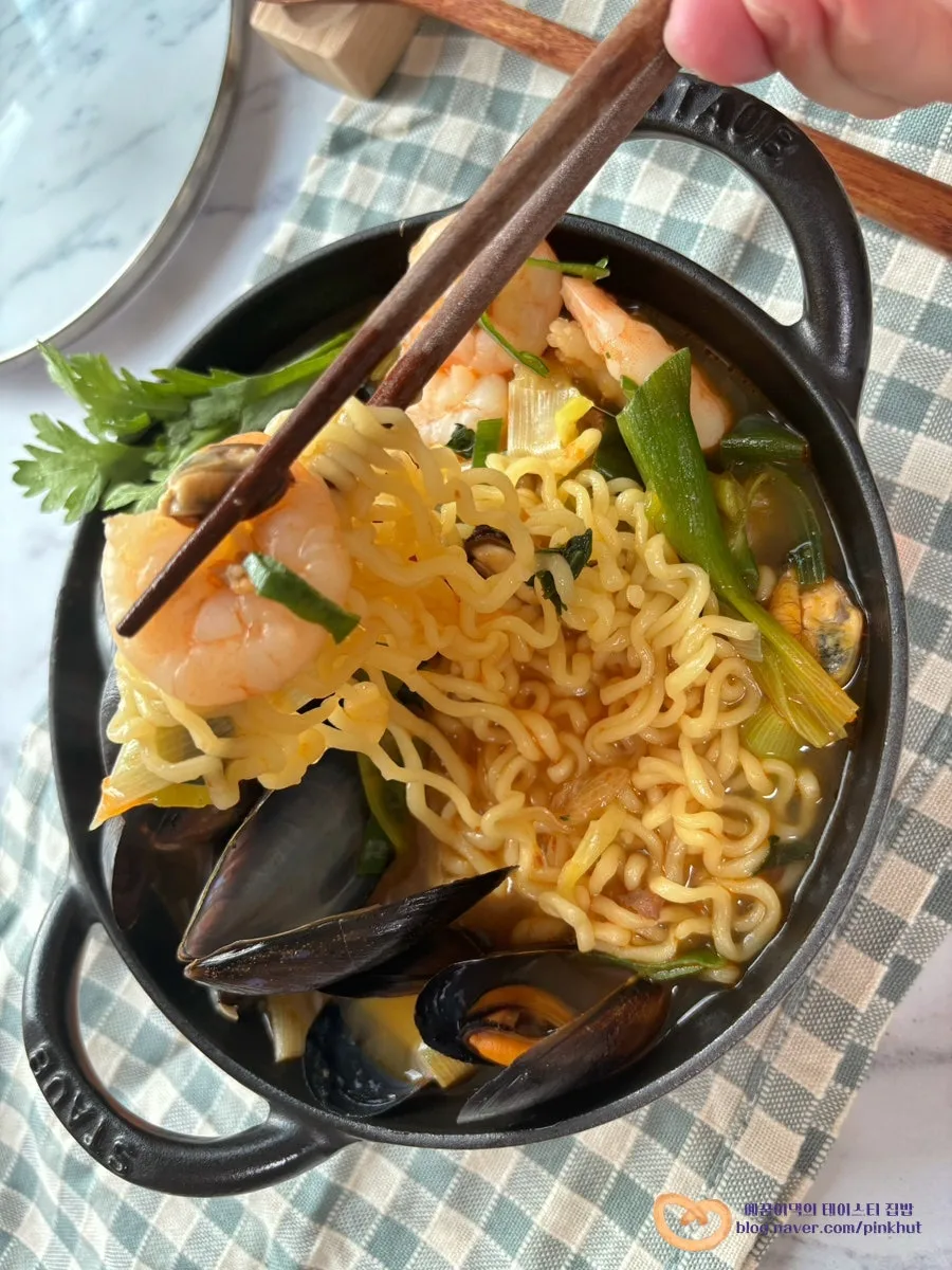 평범한 라면도 대파 고추기름에 홍합, 새우