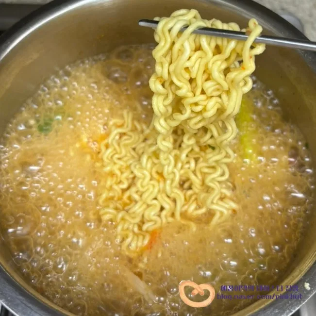 1분 정도 덜 끓여주면 면발이 꼬들꼬들하고