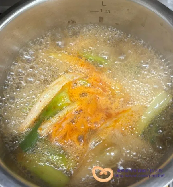 포인트! 이때 물은 찬물을 넣어 끓여주어야