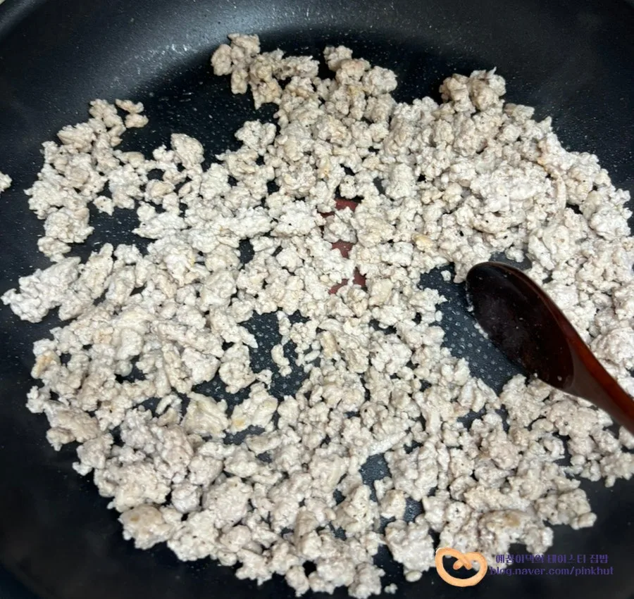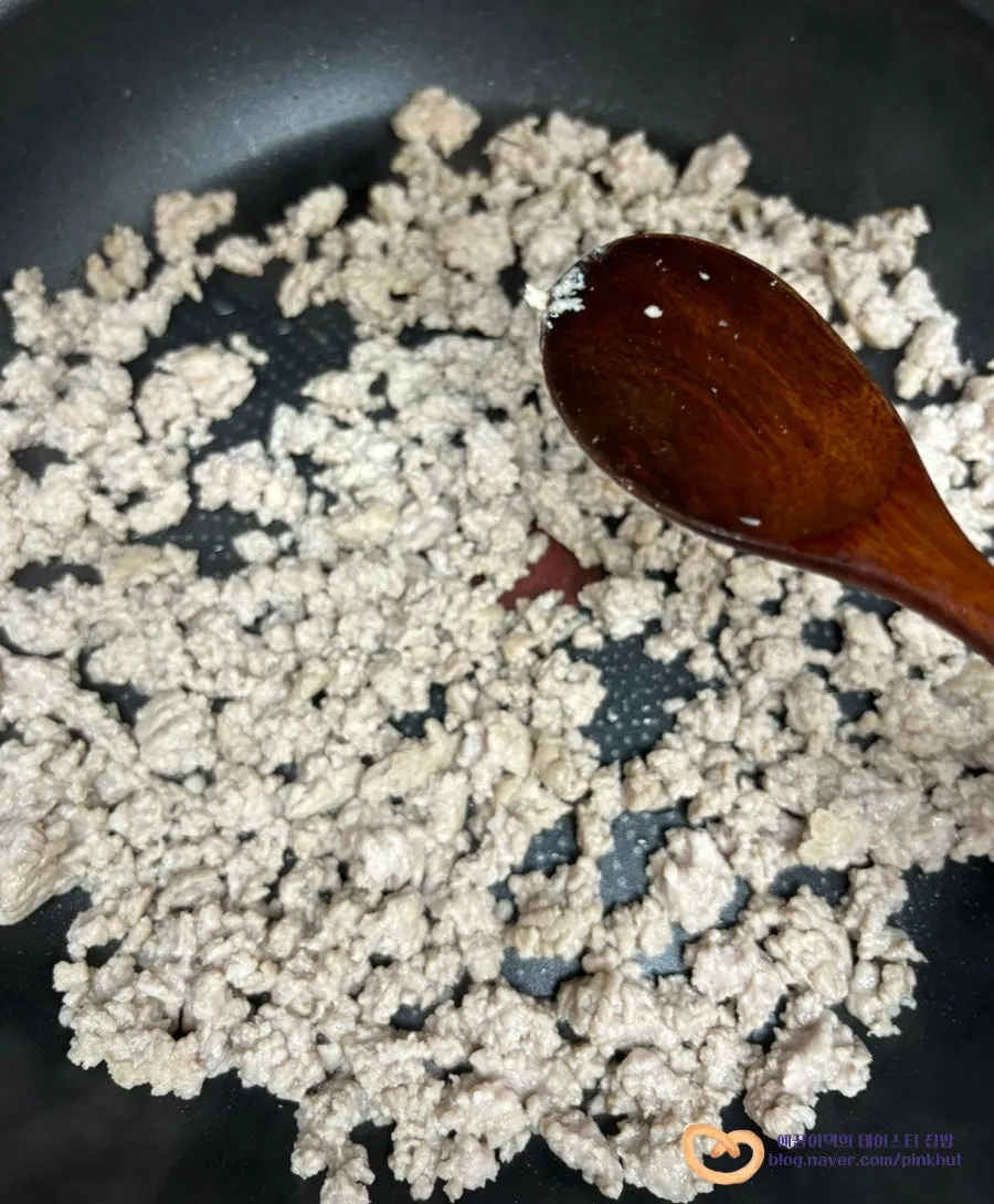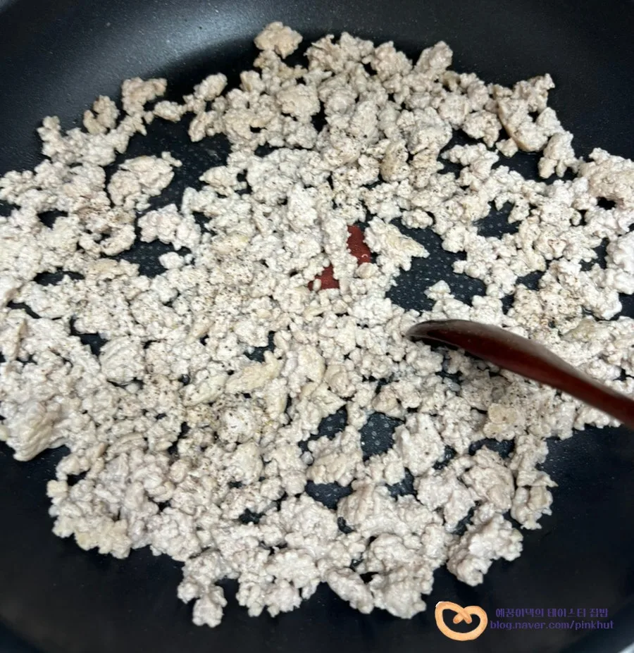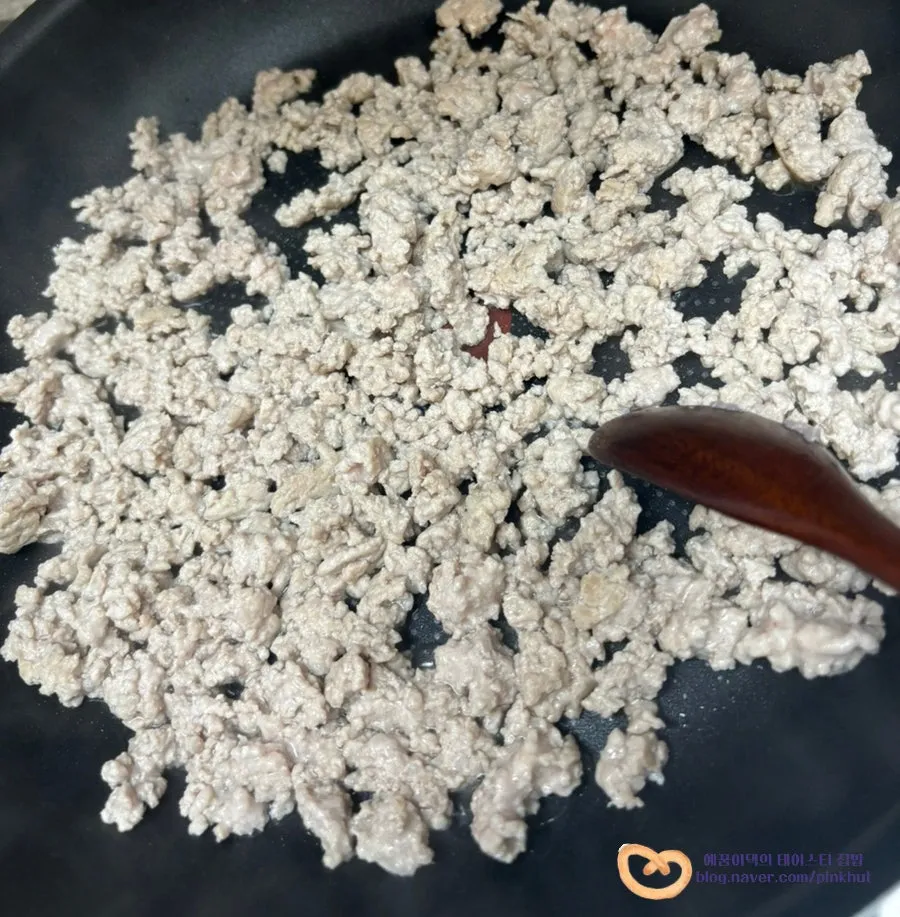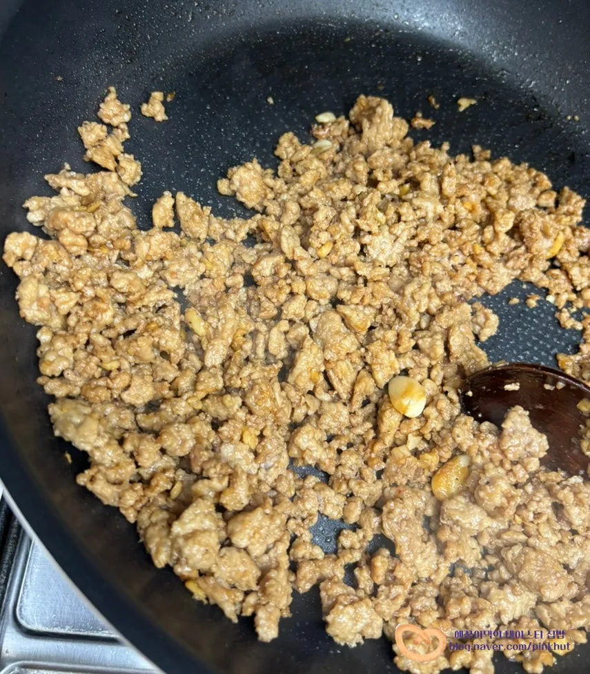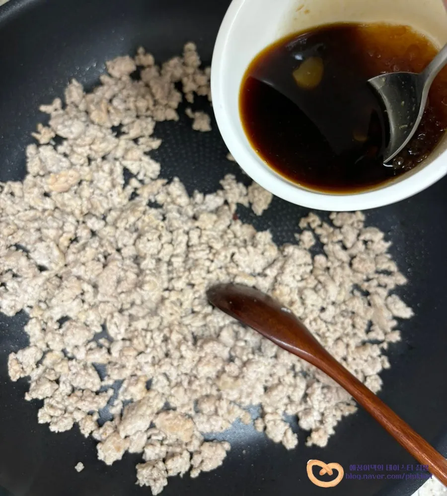 만드는데요. 돼지고기 다짐육을 간장에 조리듯