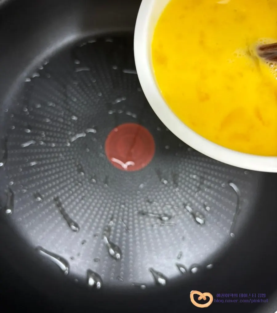 켜 주세요. 예열이 되면 계란물을 부어주고
