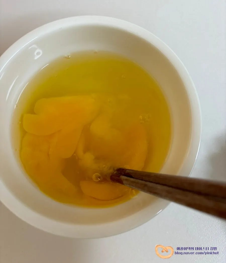 분리해 둔 노른자 1개는 고명용으로 사용할 거예요