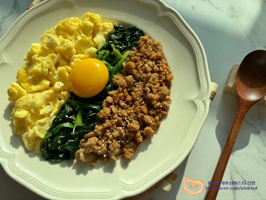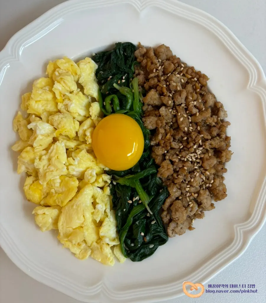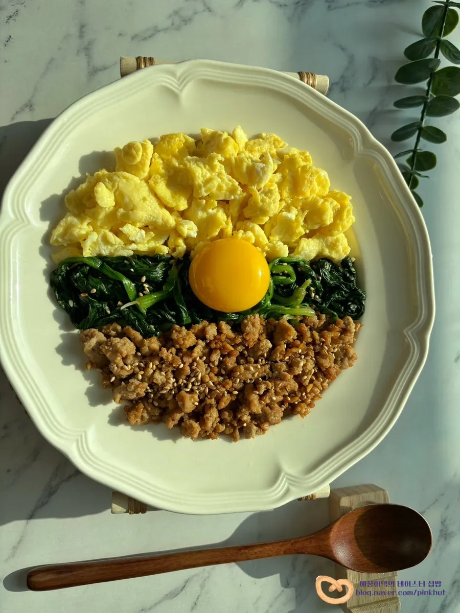 삼색소보로 비빔밥은 3가지 색감을 살려 만든
