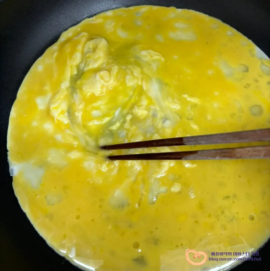 젓가락으로 휘저어서 몽글몽글 계란 스크램블을