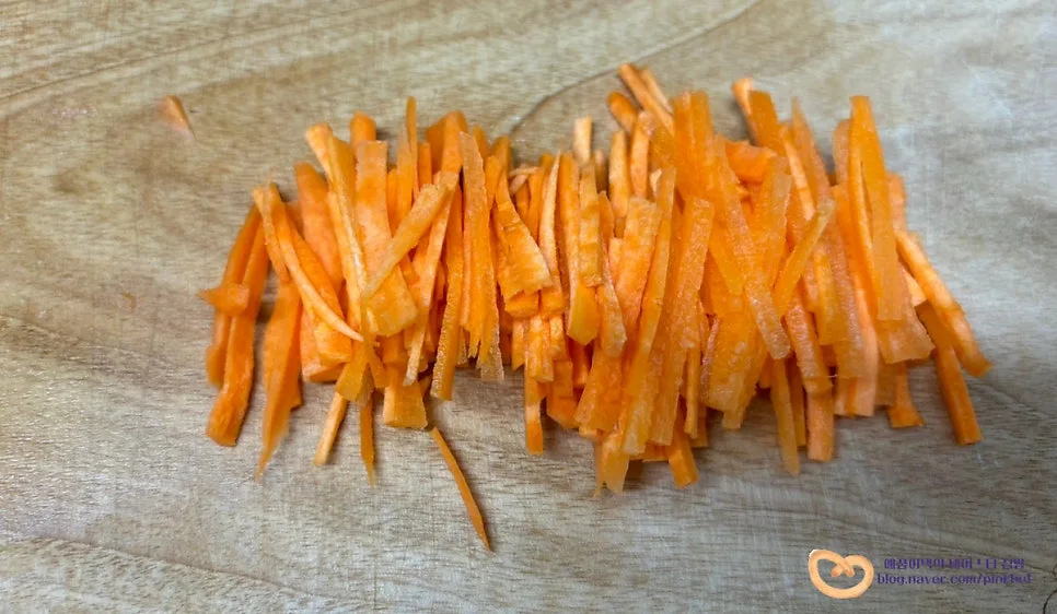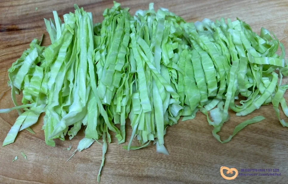 세척을 마쳤으면 위의 사진처럼 채 썰어주세요