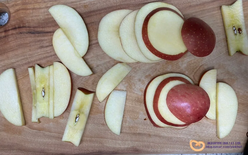 깨끗하게 세척한 사과는 가운데 씨 부분을