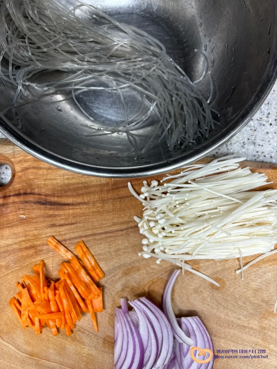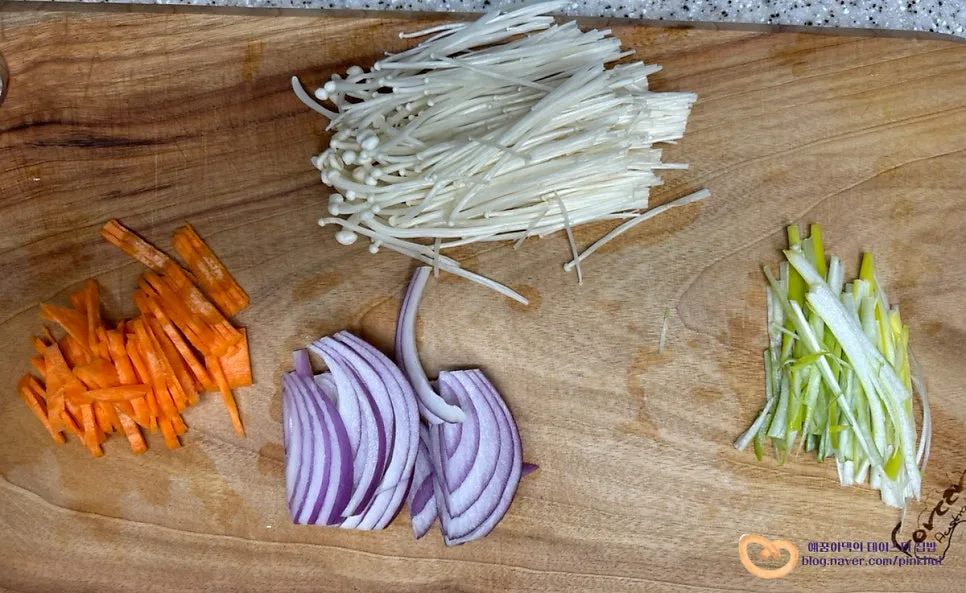 재료는 대파, 양파, 당근, 팽이버섯을 준비했으며