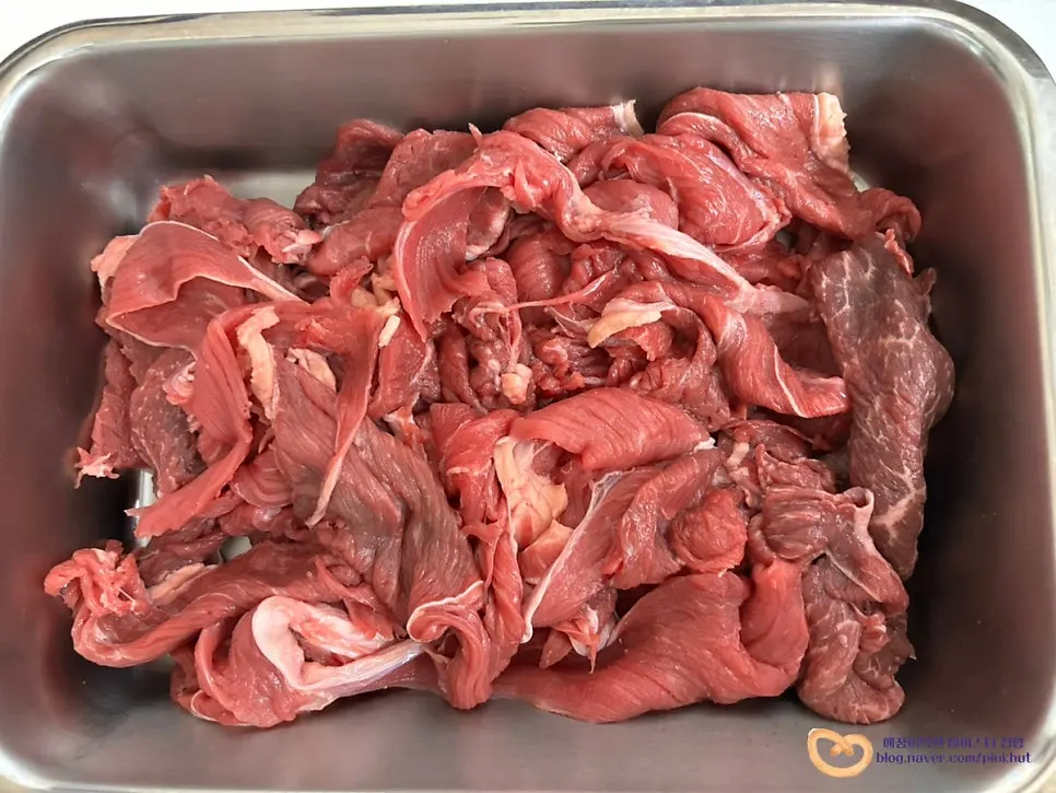 핏기를 제거한 고기는 한장씩 떼어서 볼에