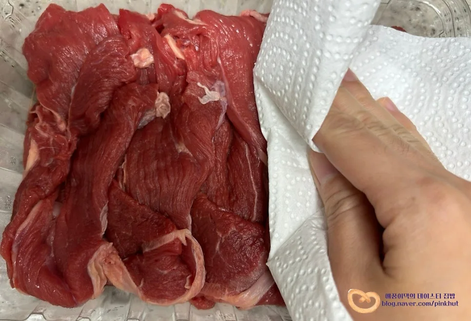 누린내를 제거하기 위해 키친타올로 톡톡 닦아서