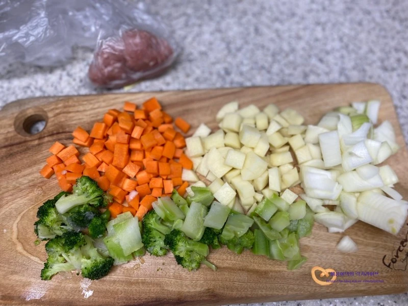 양파 1개와 브로콜리 1/2송이도 먹기 좋은 크기로 썰어줍니다