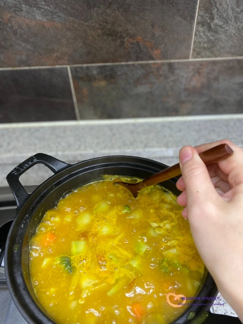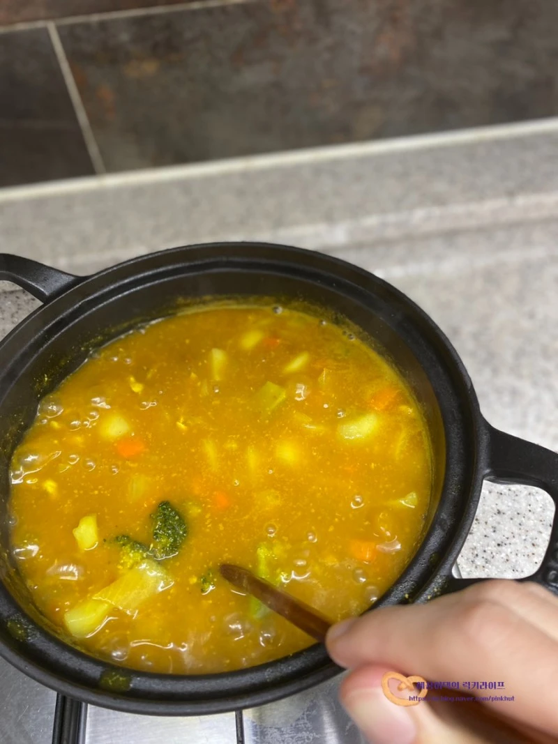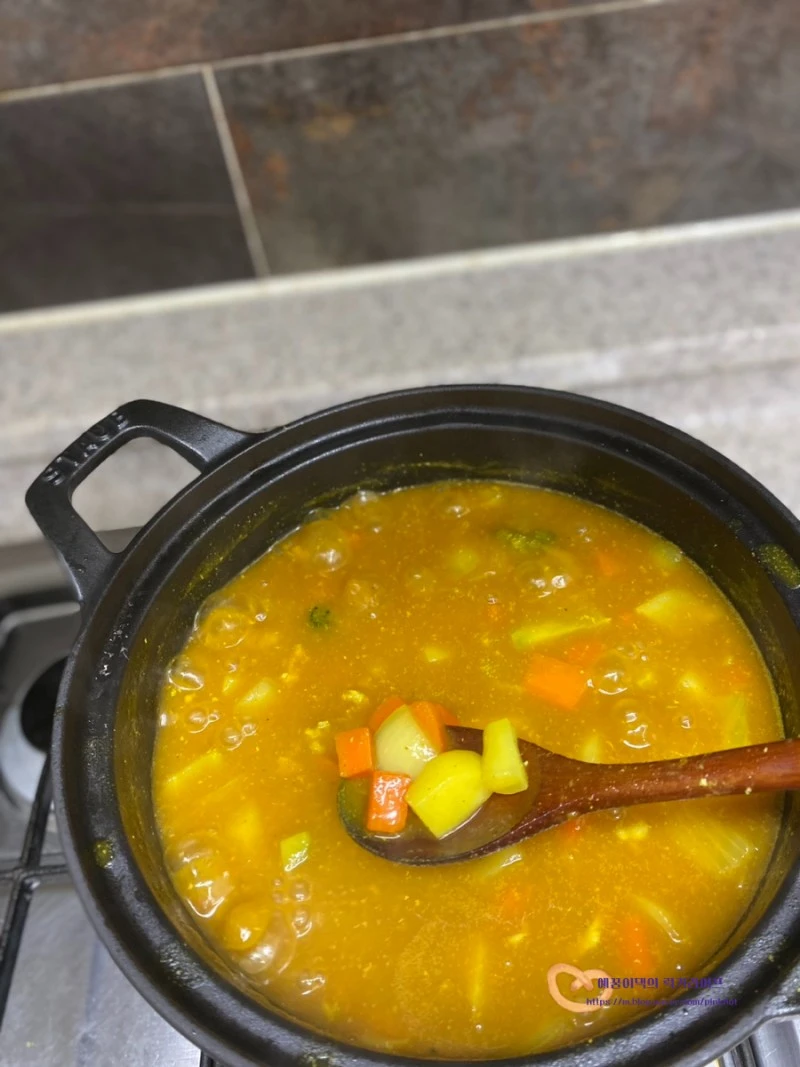 4. 카레가루 넣고 뭉근히 끓이기