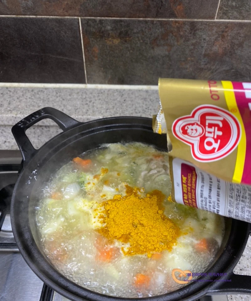 들어가는 재료로는 오뚜기카레 분말가루 1봉지와