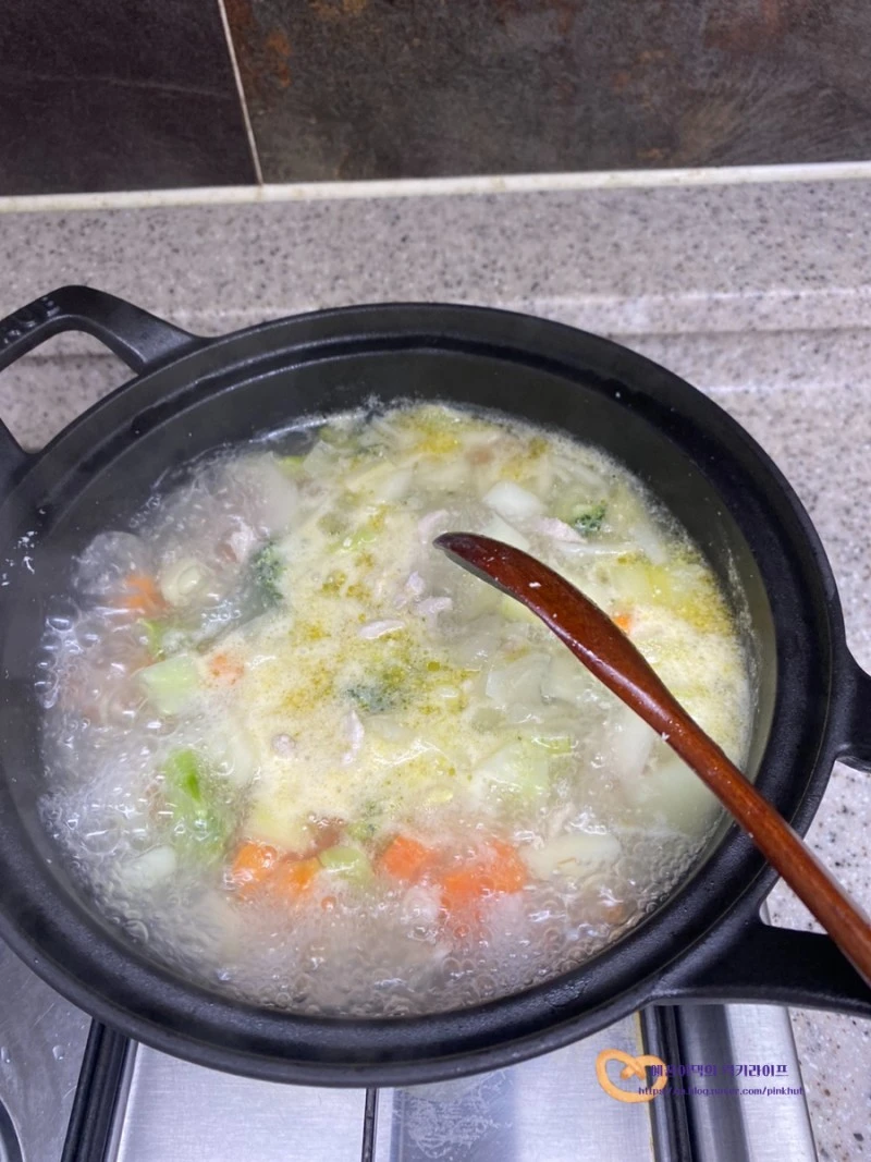 뚜껑을 덮고 재료들이 잘 익을 정도로 끓여줍니다