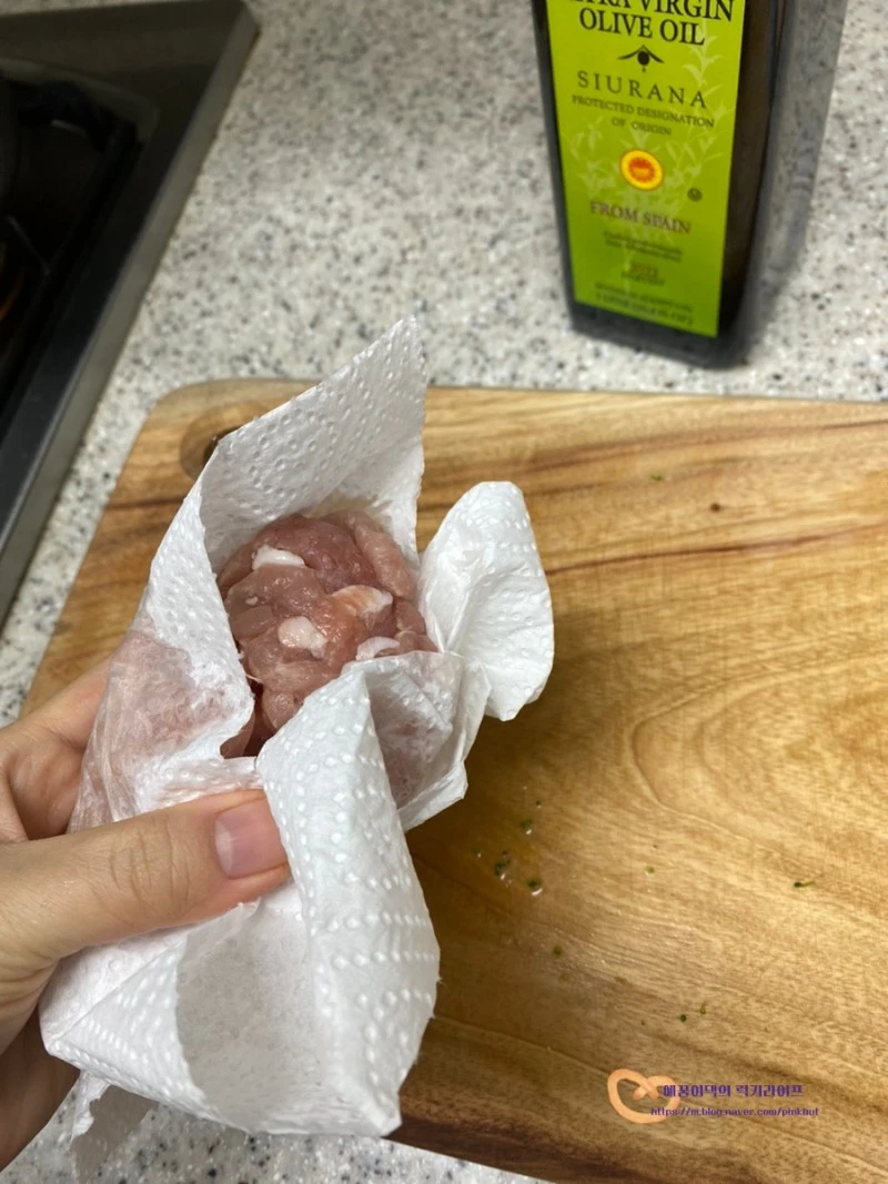 돼지고기는 키친타올로 핏기를 닦아서 준비합니다