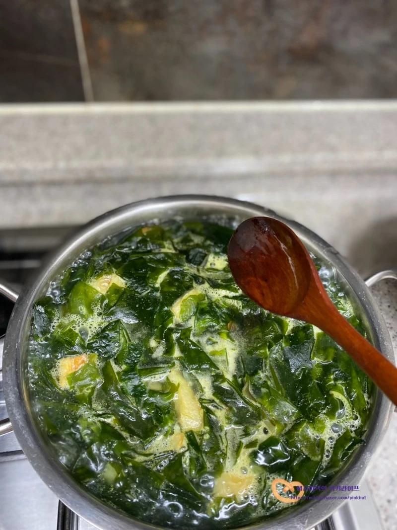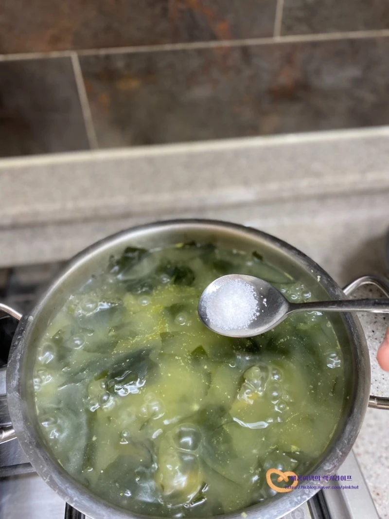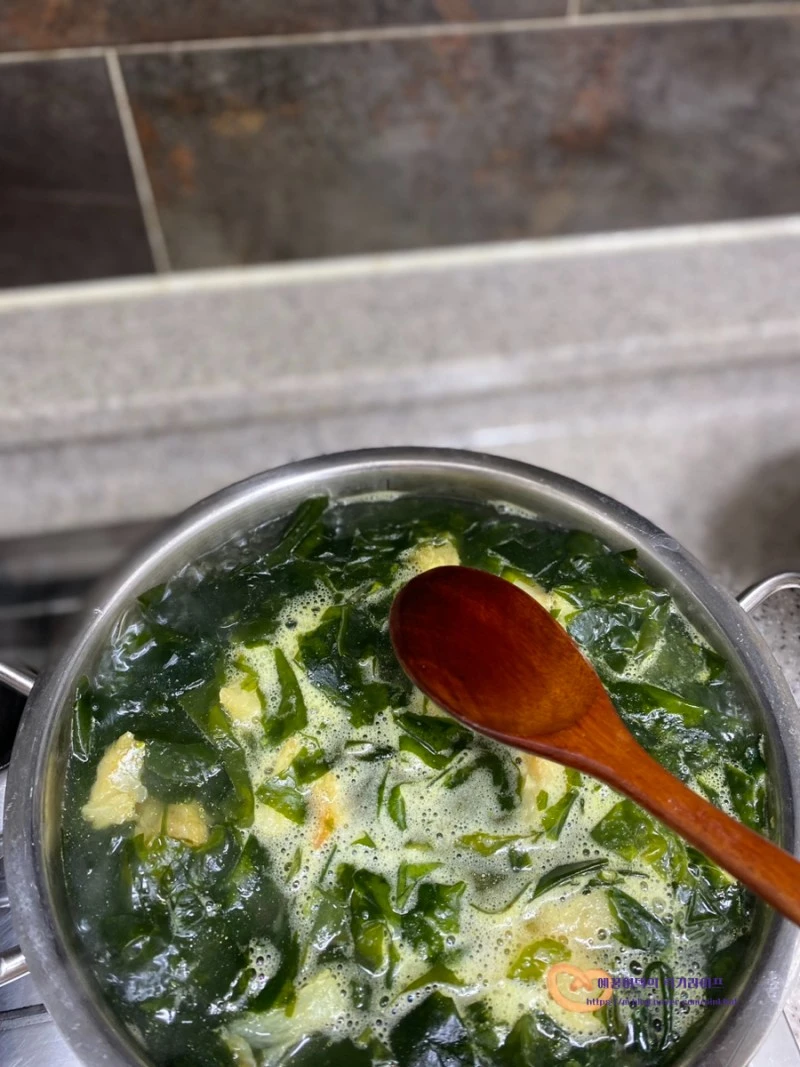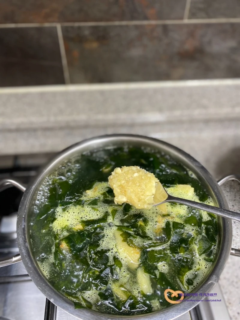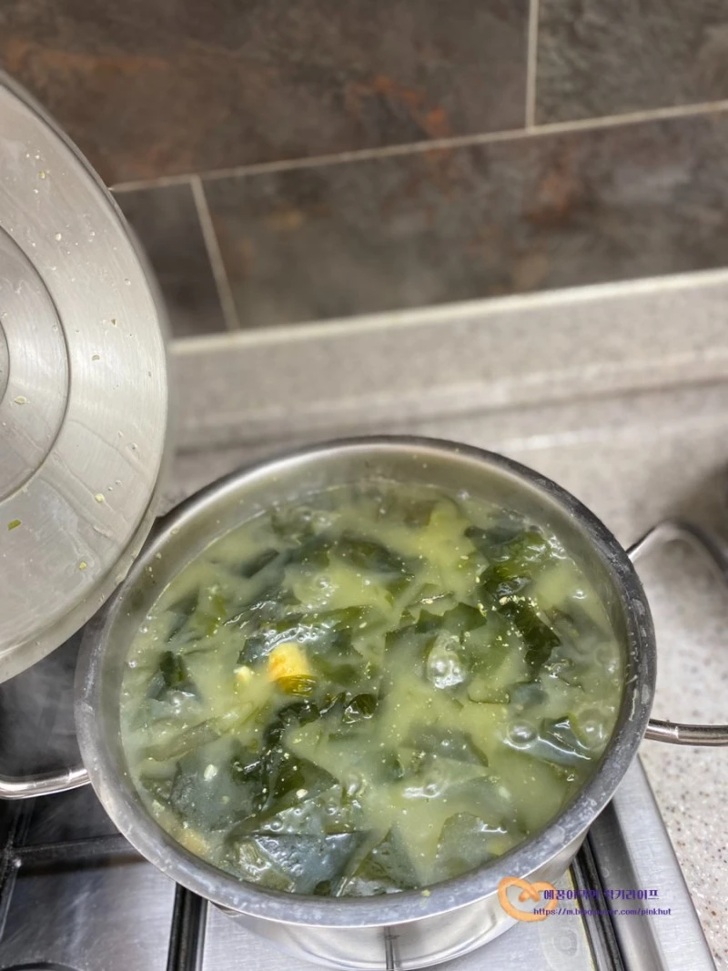 미역국의 색이 뽀얗게 우러나오면 완성 :)