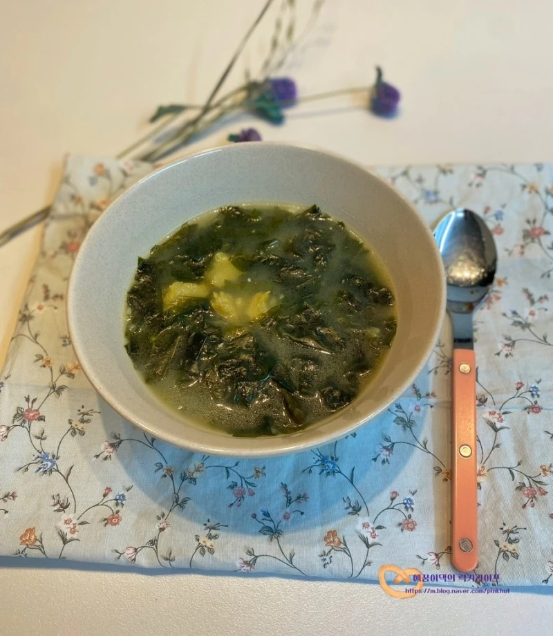 소고기미역국보다 국물맛이 깔끔하고 시원해서