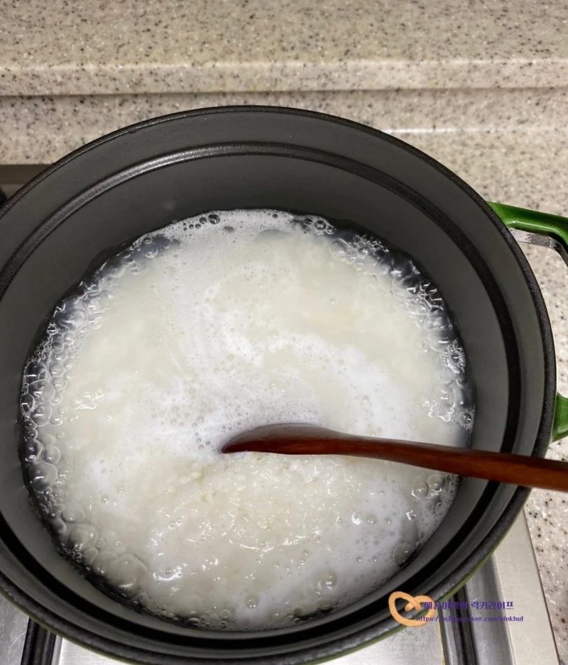 나무숟가락으로 바닥까지 고르게 뒤적여주세요 :)