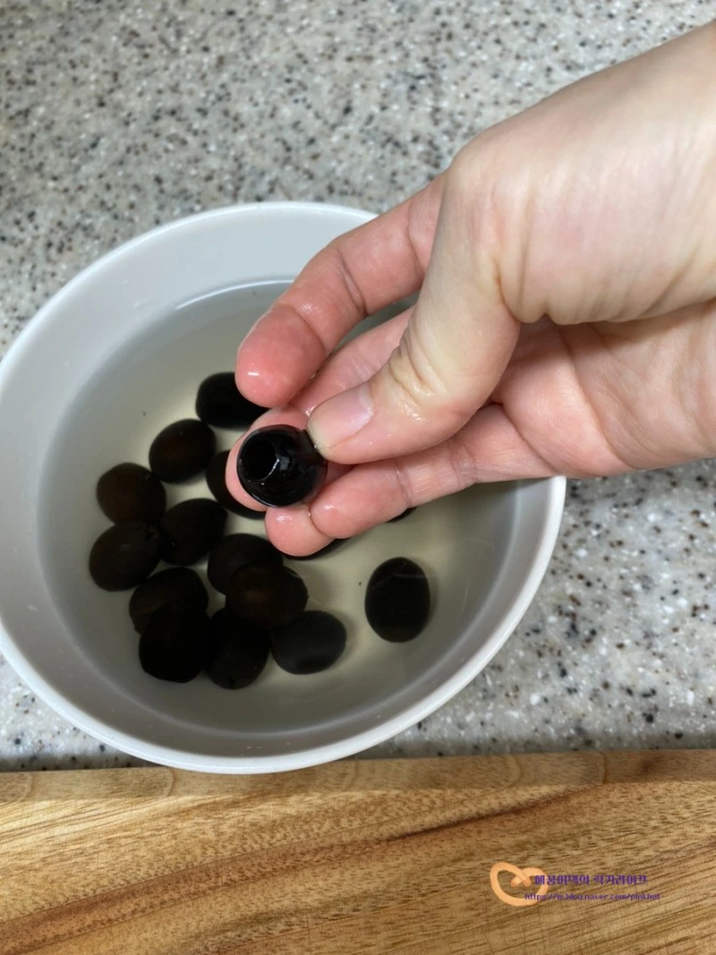 볼에 물과 올리브를 담고 조물조물 헹궈서