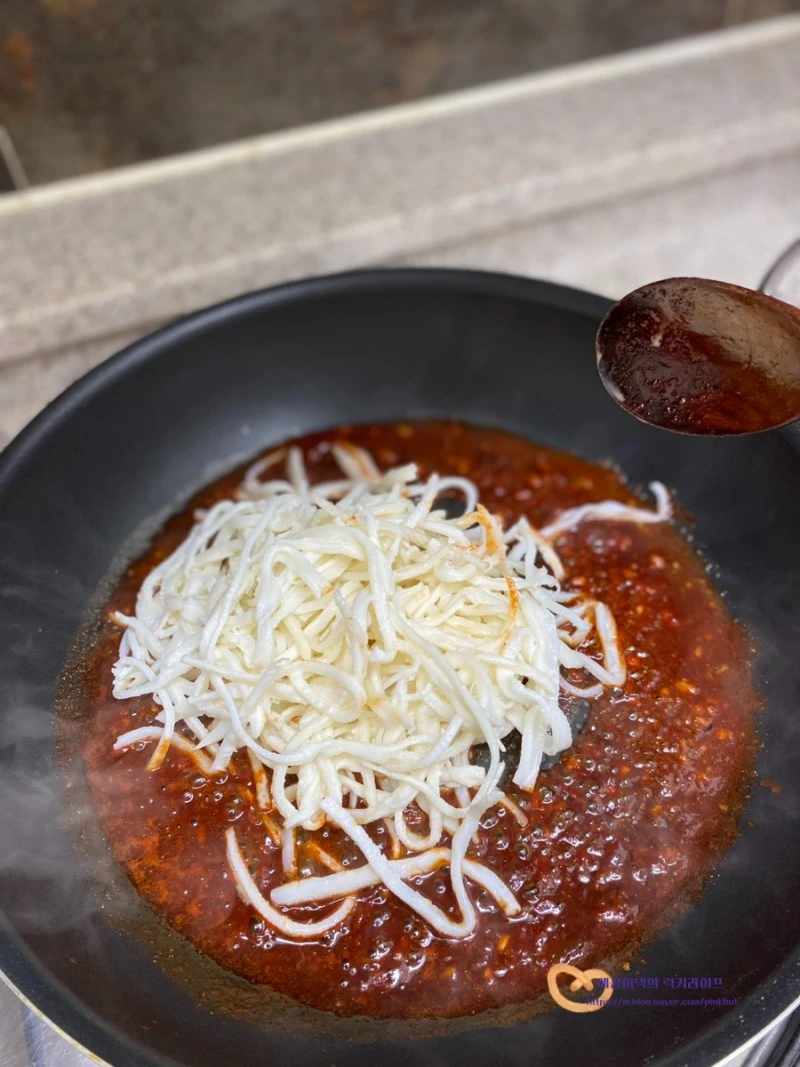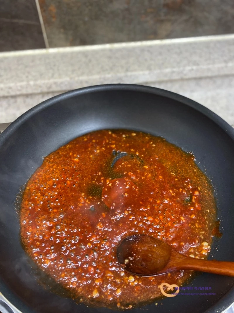 두번째 팁은 양념장에 물을 넣고 끓여서 볶아주는 것인데요.