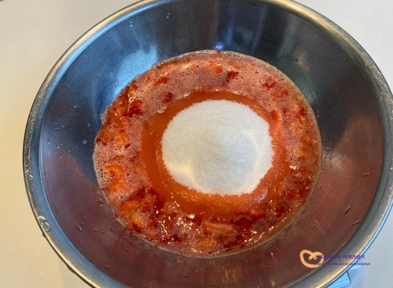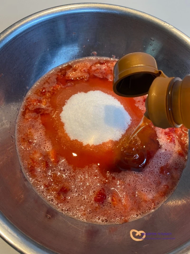 딸기와 설탕의 비율은 1:0.7 로 잡아주었으며.