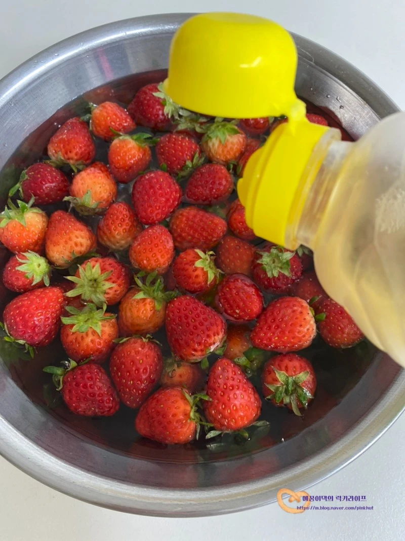 딸기는 껍질이 없는 과일이라 식초 섞은 물에 오래 담게 되면