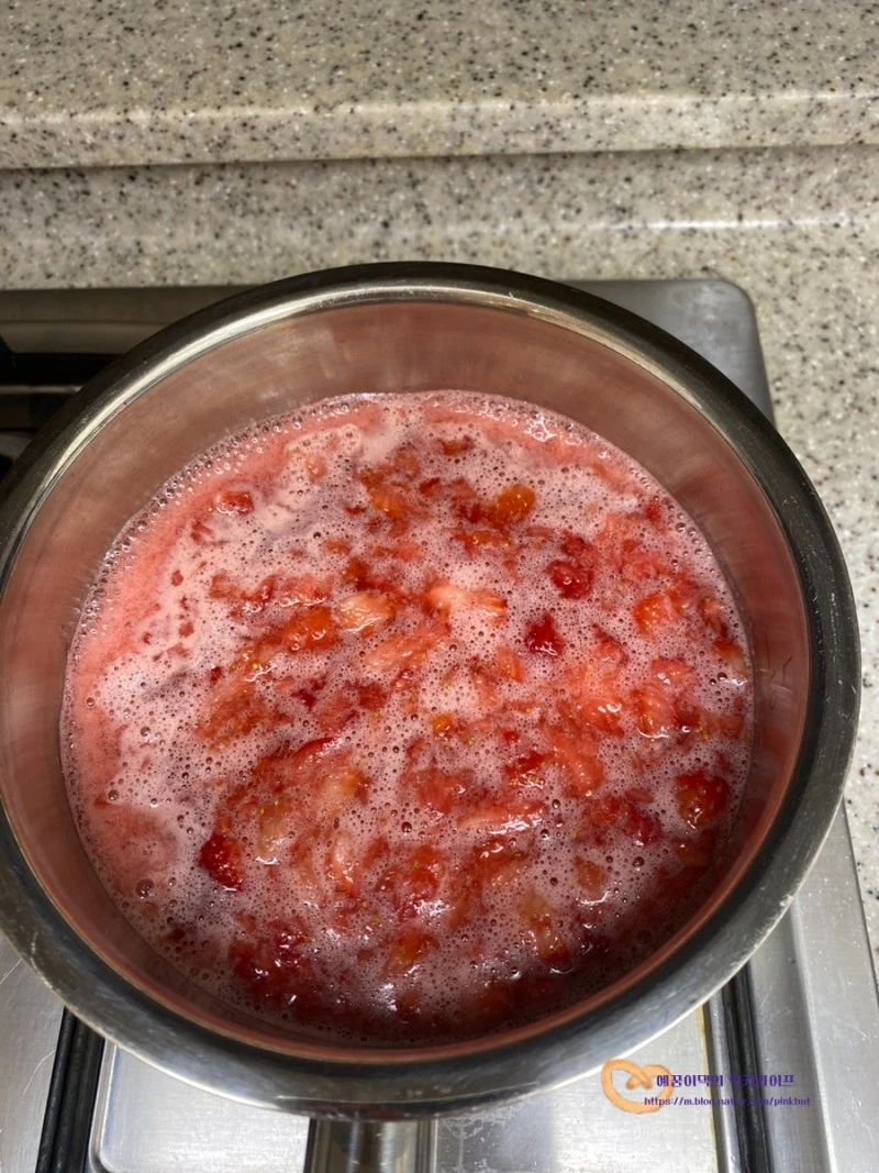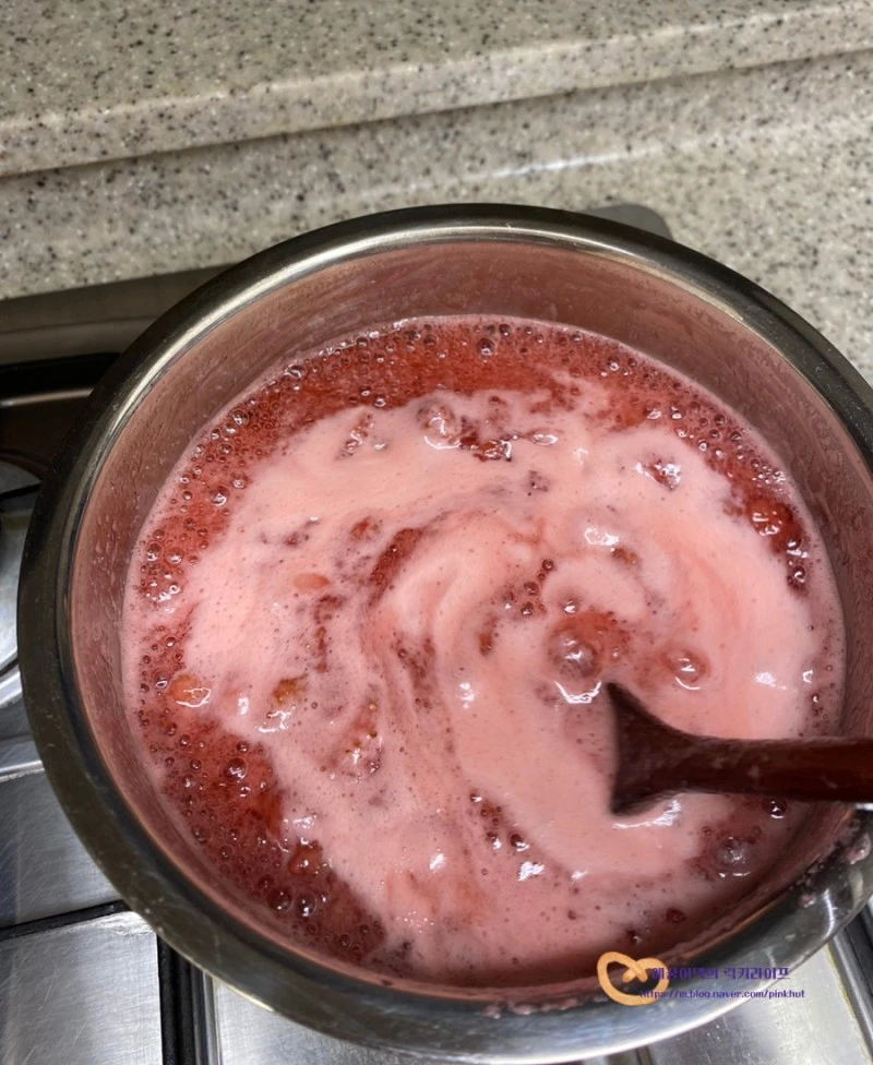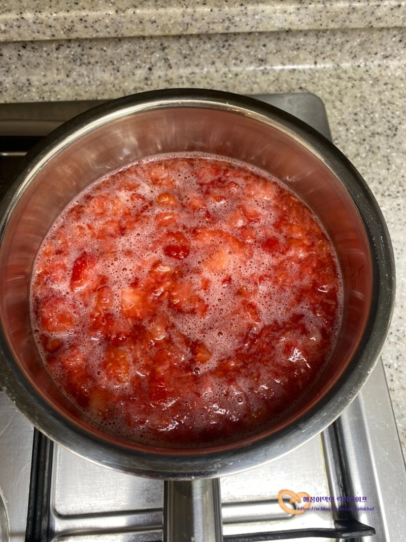 4. 냄비에 끓이기. 딸기잼 끓이는 시간