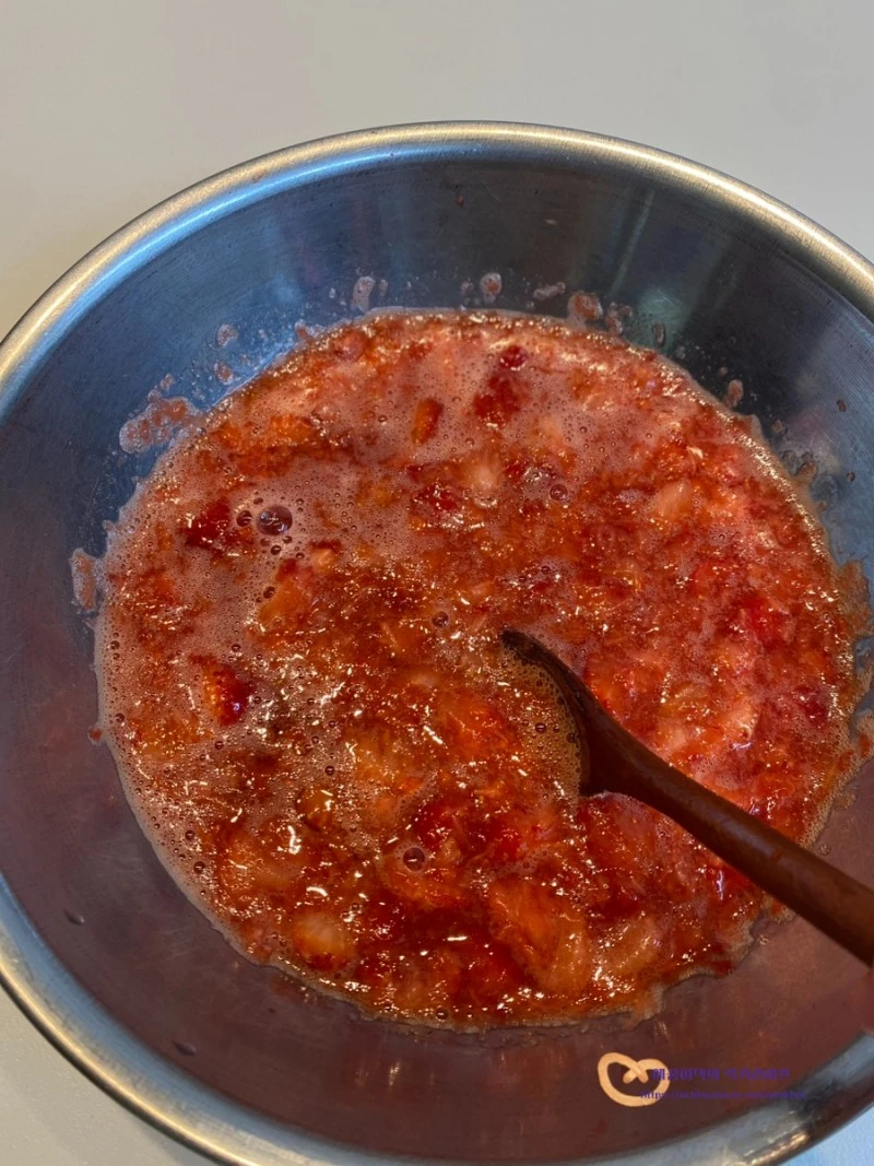 집에서 만들어 먹으면 달콤하니 딸기 덩어리의 씹히는 맛이 더 좋아요 :)