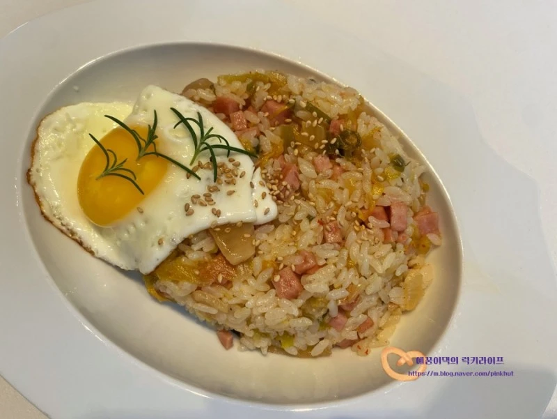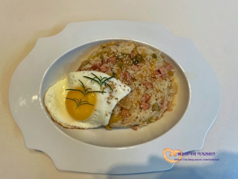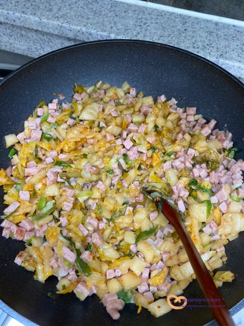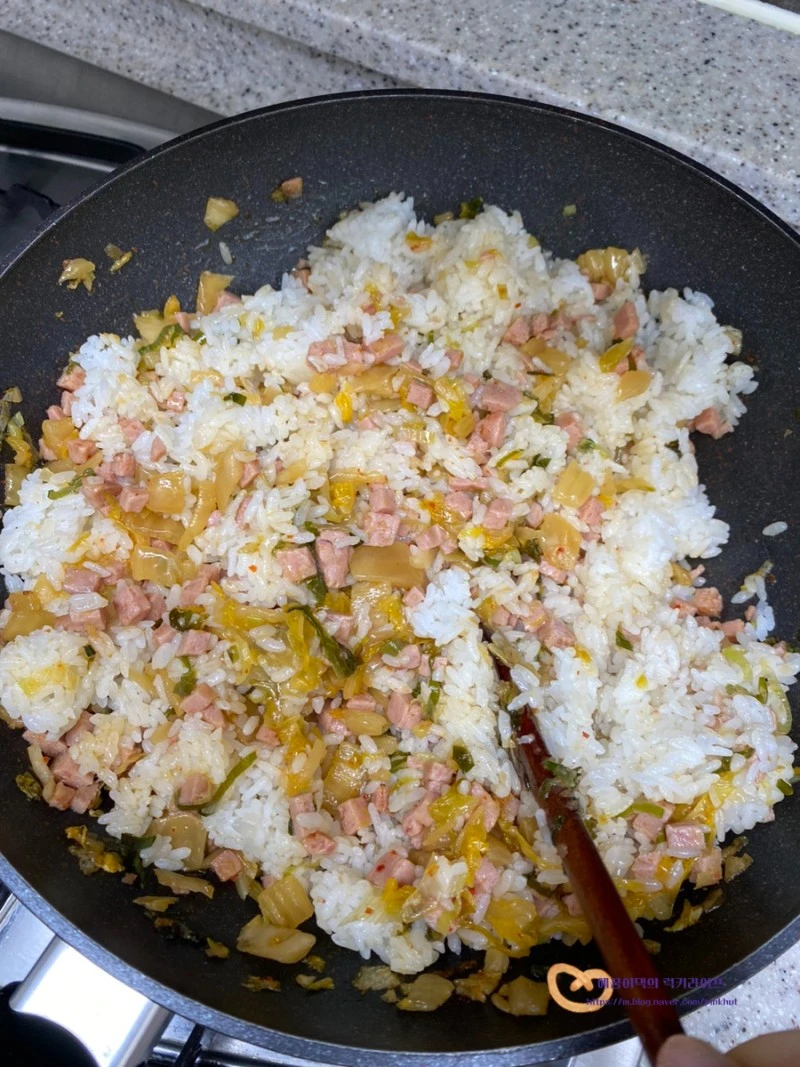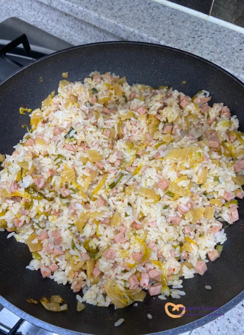 스팸김치볶음밥을 잘 먹는다지유!