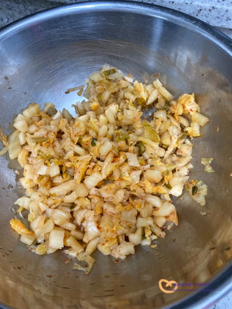 김치 역시 가위로 잘게 잘라서 준비해 주세요 :)
