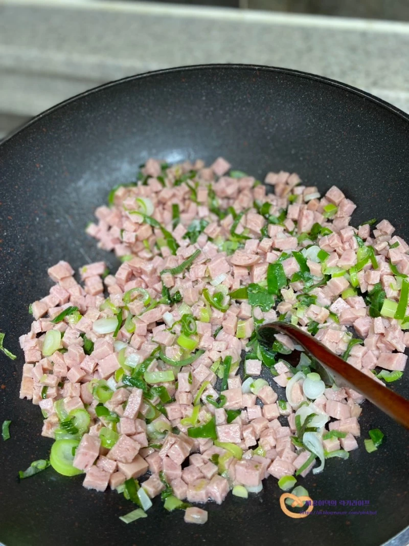 이어서 스팸을 넣고 달달 볶아서