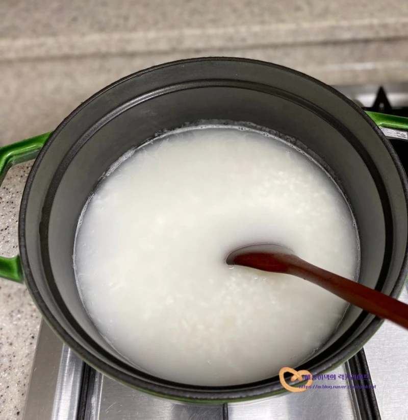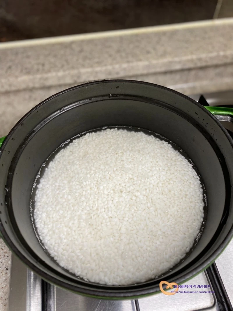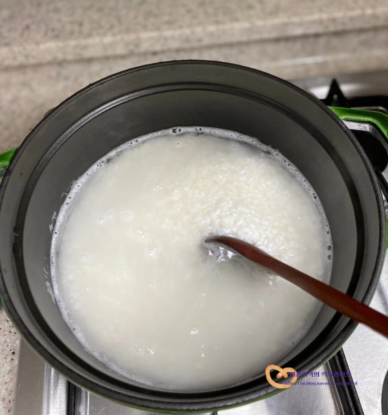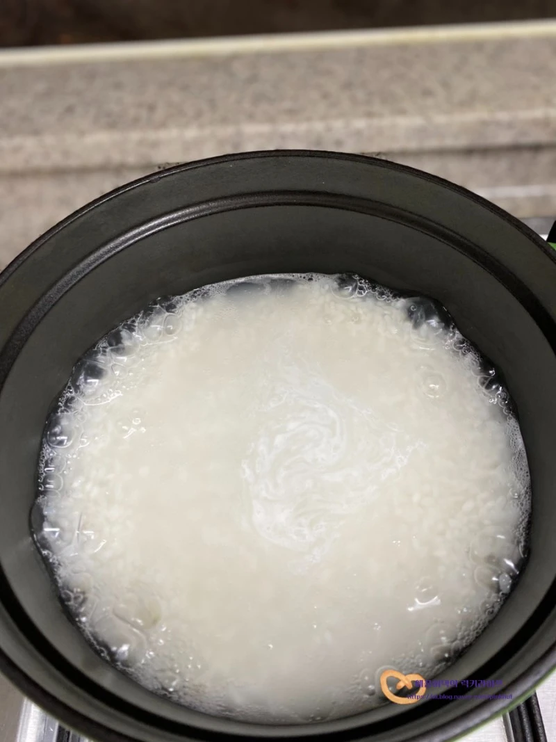 2. 냄비에 불린쌀 넣고 물 넣어서 끓이기