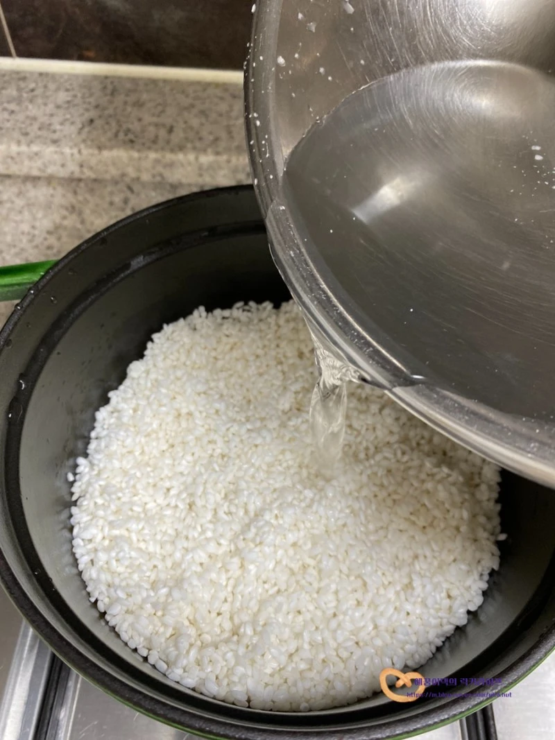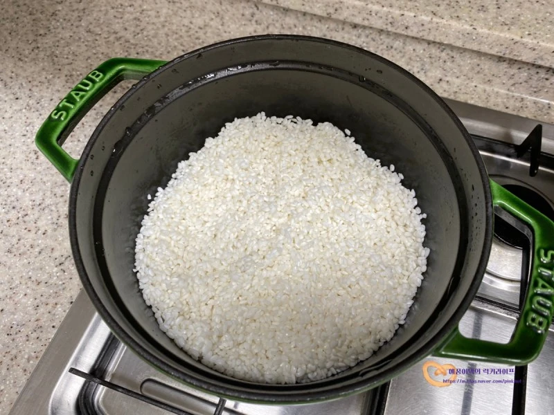 1. 쌀 세척 후 불리기. 재료 준비하기