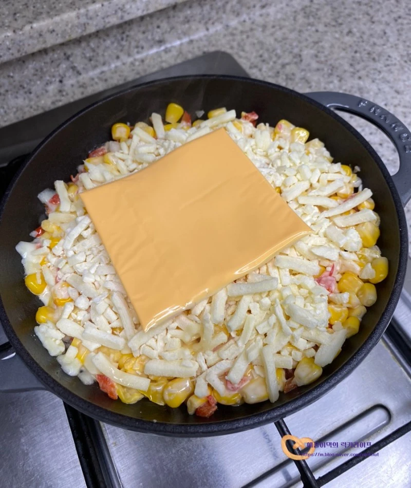 모짜렐라 치즈 + 체다치즈까지 넣어주면 더 맛이 좋으니