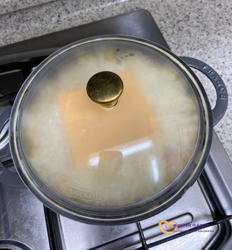 뚜껑을 닫고 중약불에 5분 정도 익혀주었어요