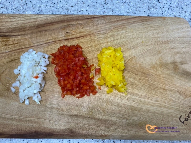 파프리카, 양파는 볶음밥에 들어가는 크기로 잘게 썰어주었어요
