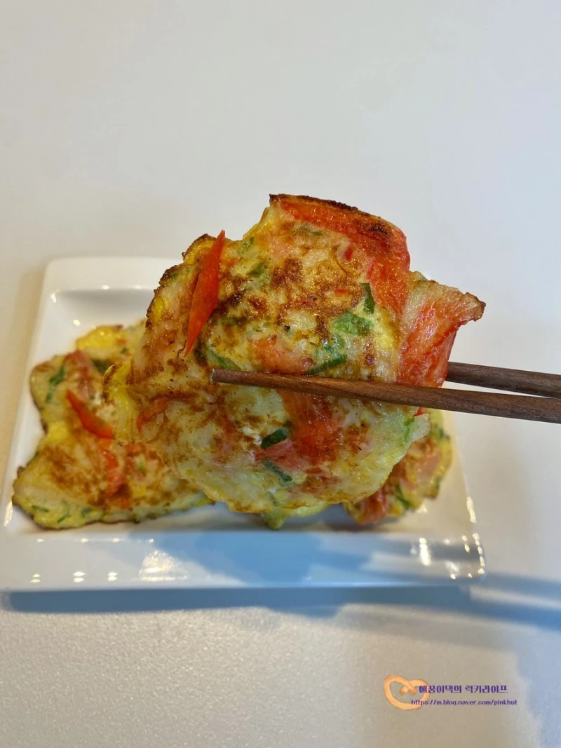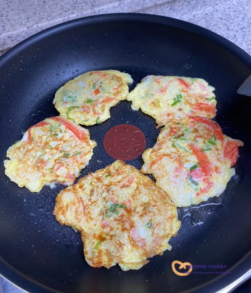 후라이팬에 지글지글 부쳐낸 맛살 계란전
