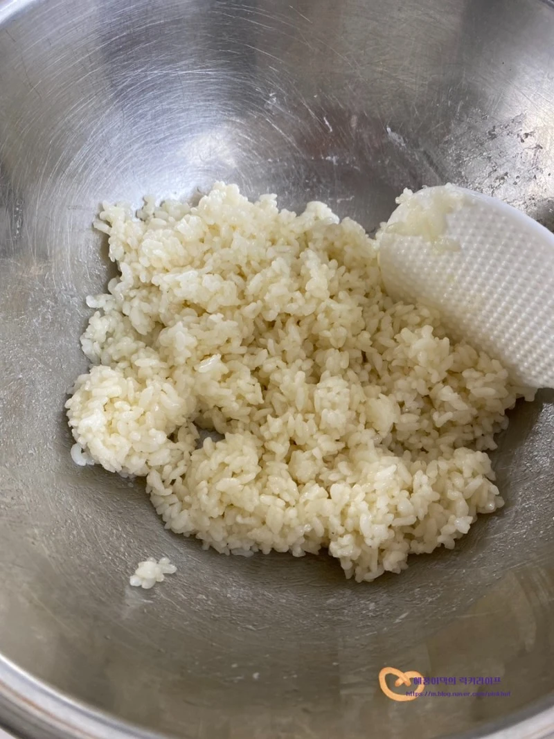 밥은 뜨끈뜨끈한 상태의 밥으로 양념을 해야 잘 섞여요