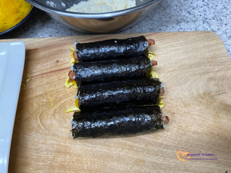 일반 김밥김이 있으시다면 4등분으로 나누어 사용하셔도 좋아요 :)