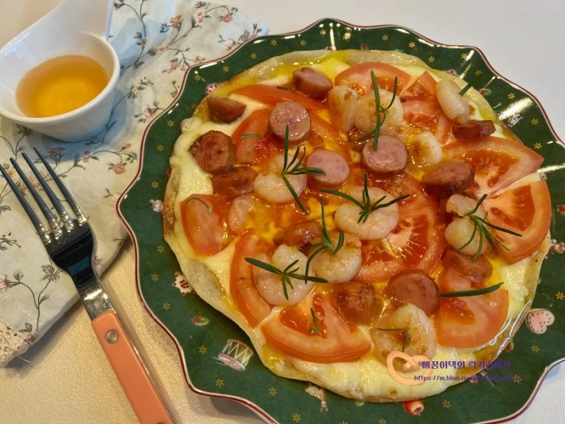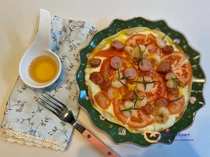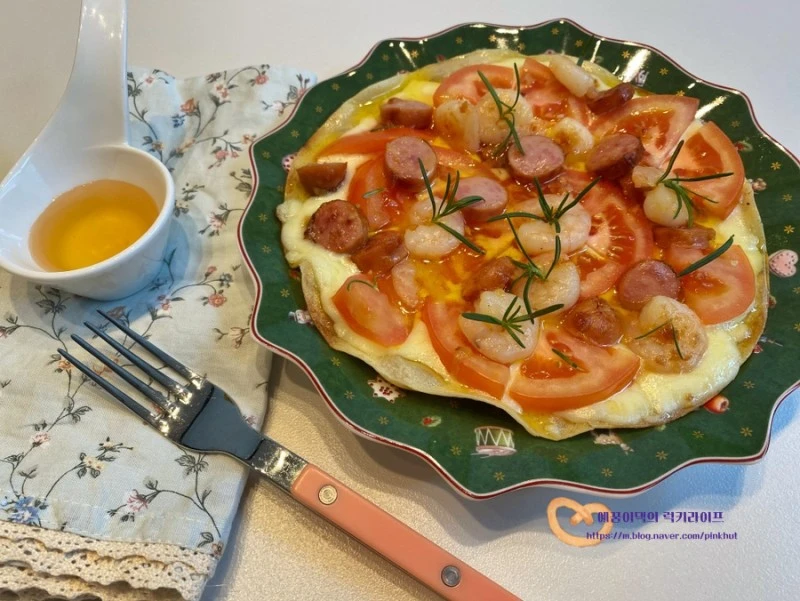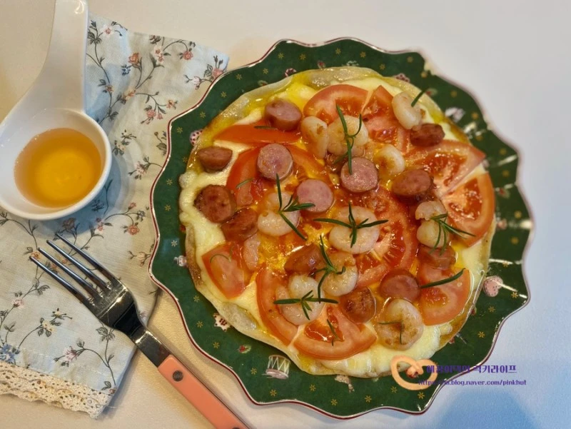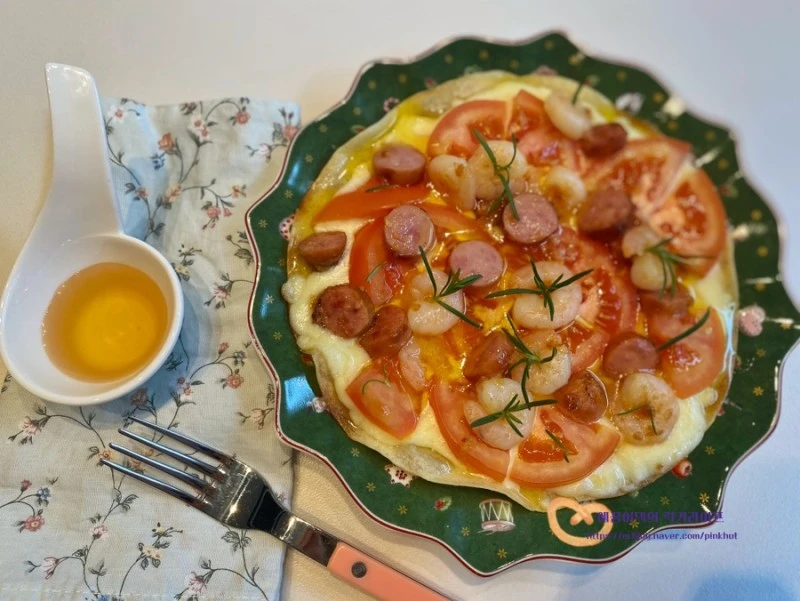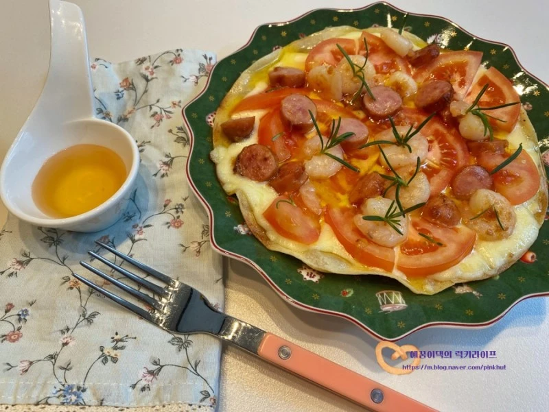 꿀새우피자 토마토 또띠아피자 를 만들어 보았어요 :)