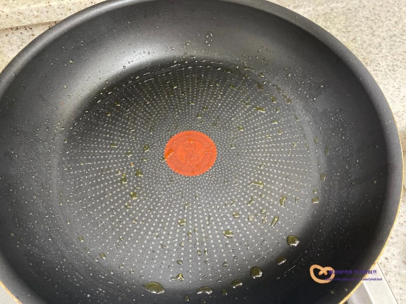 팬의 바닥에 남은 마늘기름은 정리하지 않고